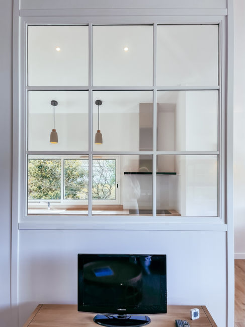 Cette verrière a non seulement permis de décloisonner les espaces, mais elle renforce aussi cette sensation de volume tout en permettant à la lumière de traverser la pièce.
